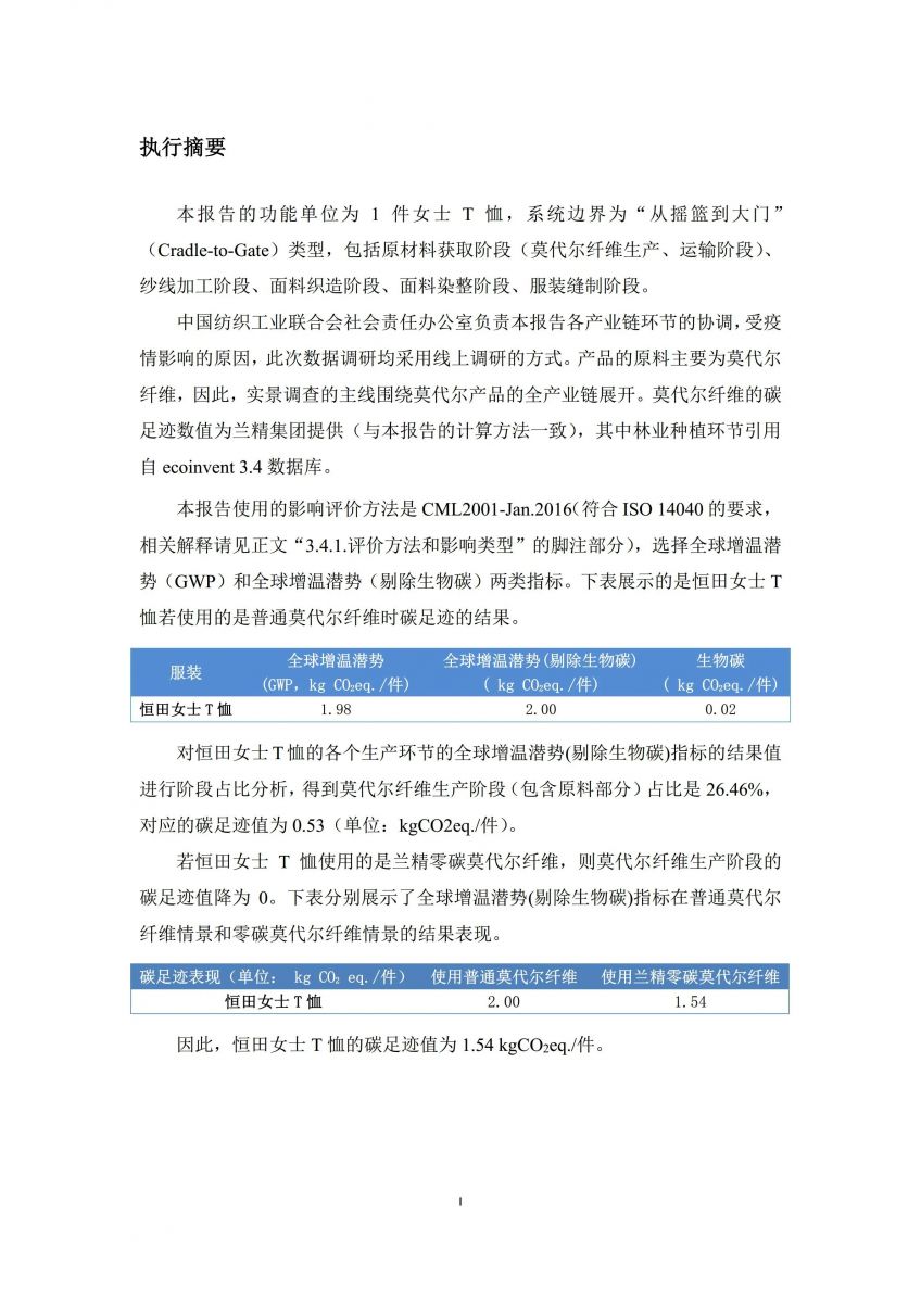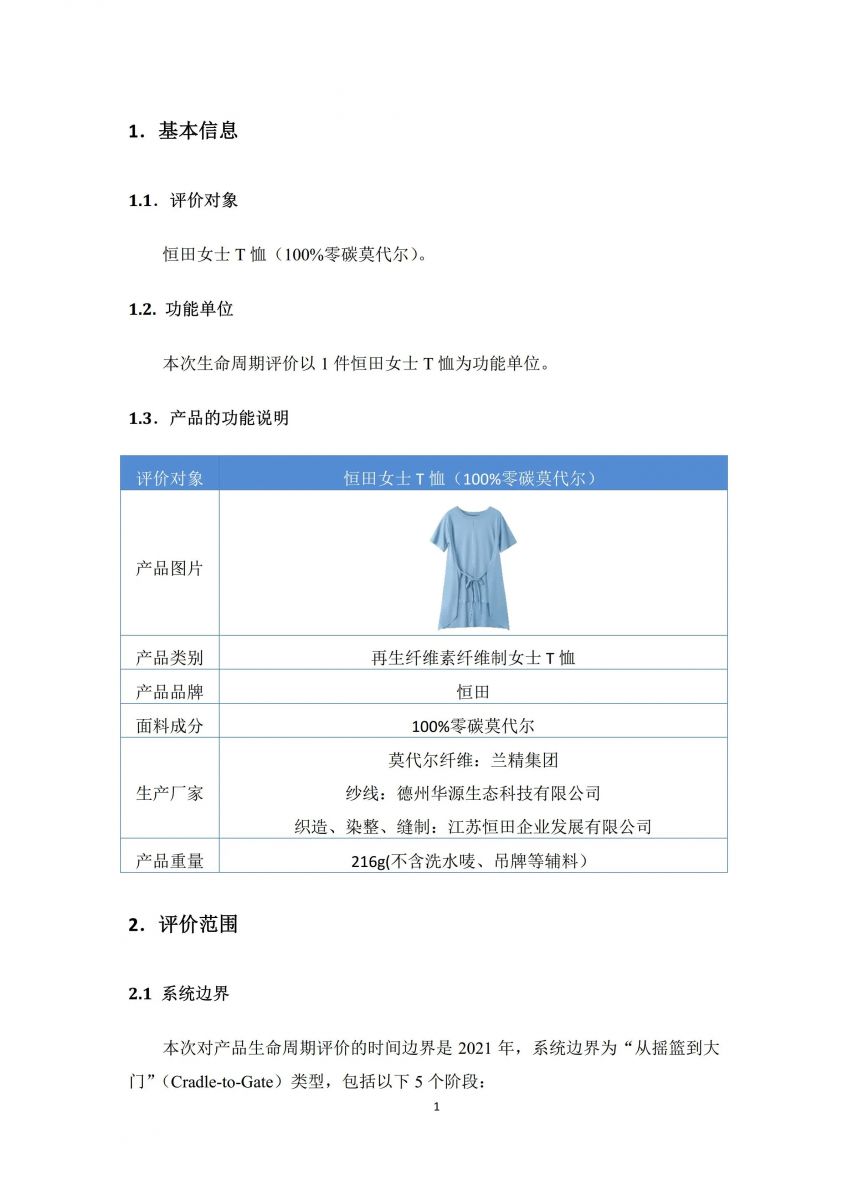 德州華源生態(tài)—恒田女士莫代爾T恤碳足跡報告